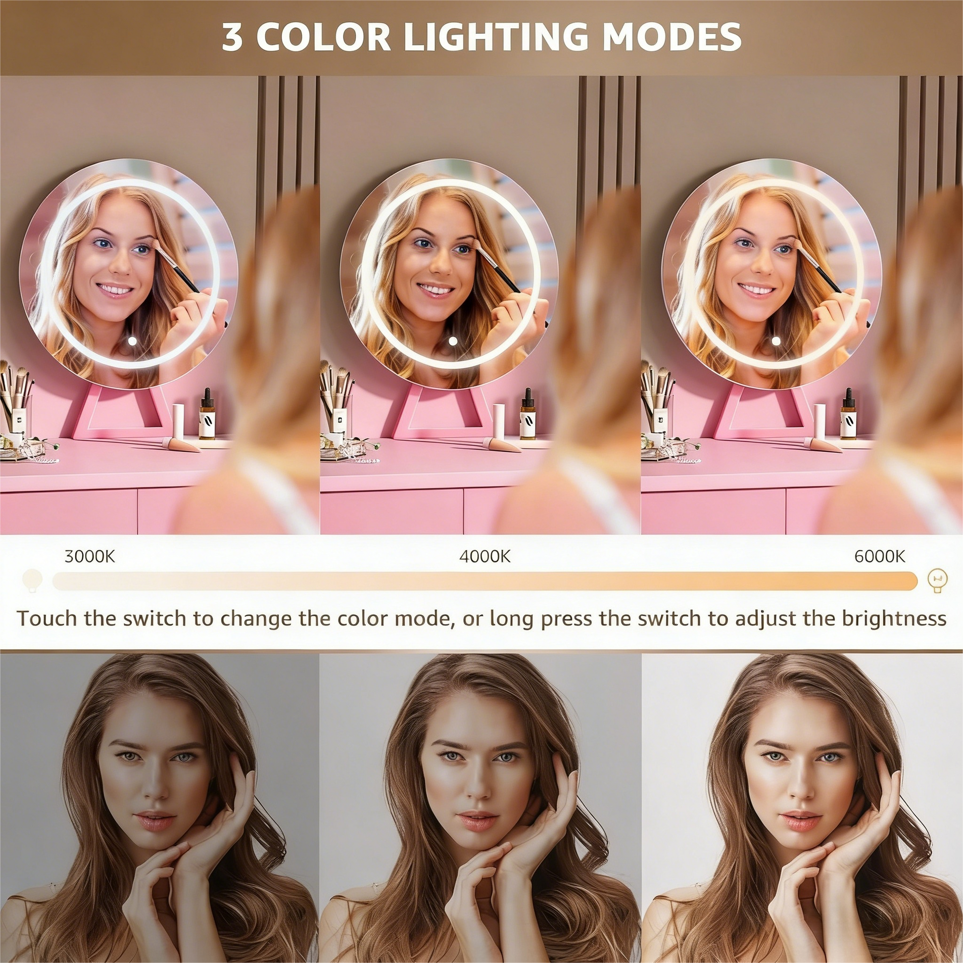 - 3 Lighting Modes: LED mirror with 3000K/4000K/6000K options + touch-adjustable brightness.